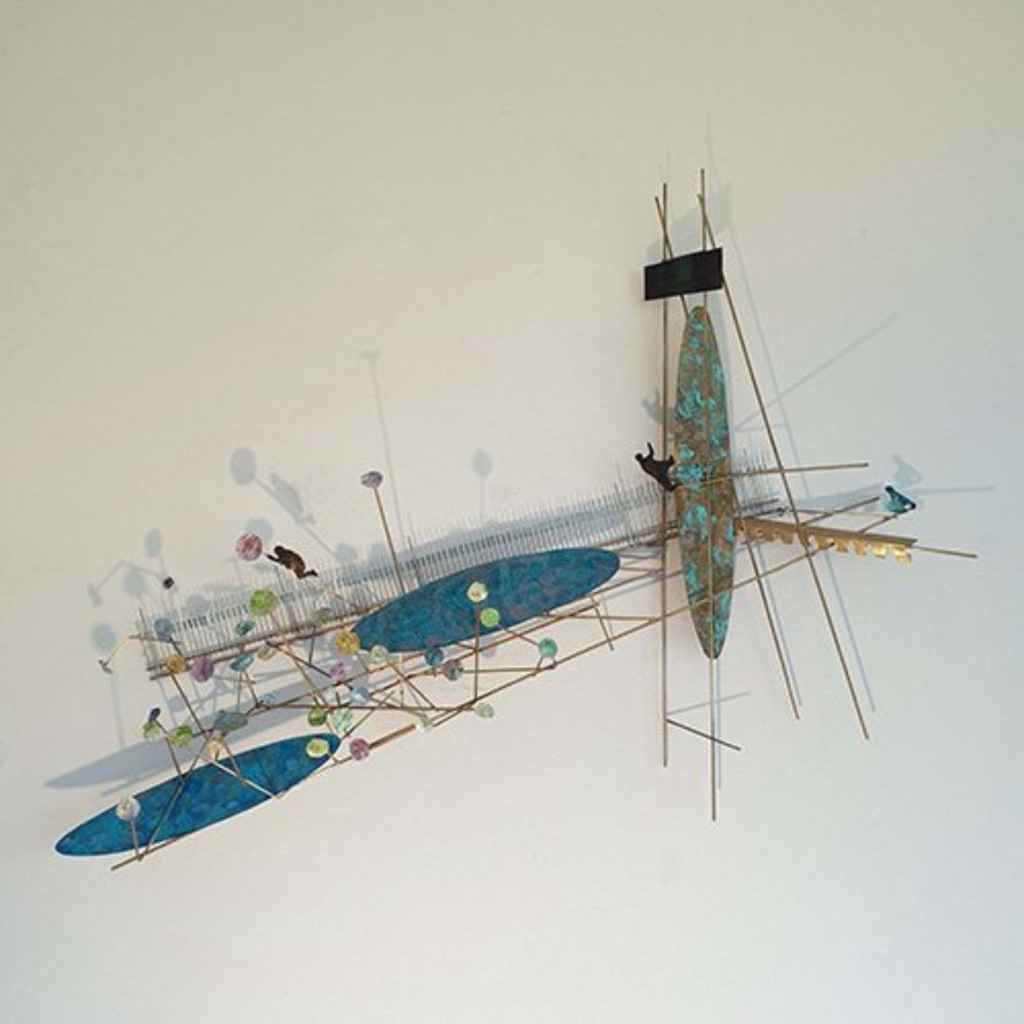 De Vrolijke Noot is een nieuw wandreliëf van Leni van den Band. Het thema is dit keer muziek. Dit wandobject is gemaakt van messing en koper, wat is gepatineerd zodat een oxidatie effect ontstaat. Het resultaat is een ruimtelijk werk wat op een speelse manier met licht en schaduw omgaat. Soms is Leni op donderdag zelf aan het werk in de galerie. Wil je meer weten over dit werk of een van de andere werken van Leni? Boek een bezichtiging of kom naar de galerie.